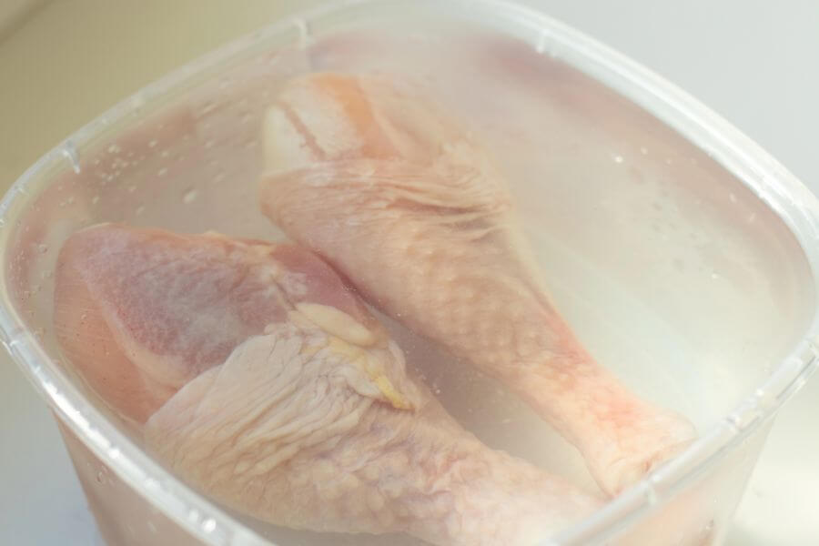 - Po drugie: temperatura. Woda musi być zimna (z kranu). Ciepła woda to błąd – podgrzeje ona zewnętrzne warstwy mięsa do temperatury idealnej dla bakterii, podczas gdy środek wciąż będzie bryłą lodu. Aby utrzymać proces w ryzach, wymieniaj wodę w misce co 30 minut. To zapewnia stałą wymianę cieplną i hamuje rozwój drobnoustrojów.