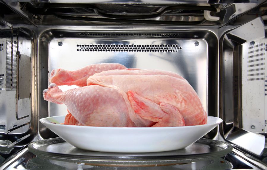 Ważne zastrzeżenie: mięso rozmrożone w mikrofalówce lub piekarniku musi trafić na patelnię lub do garnka natychmiast po wyjęciu z urządzenia. Częściowe podgrzanie tkanek aktywuje bakterie, dlatego nie można takiego produktu „odłożyć na później” ani ponownie włożyć do lodówki. To metoda typu „rozmroź i gotuj”.